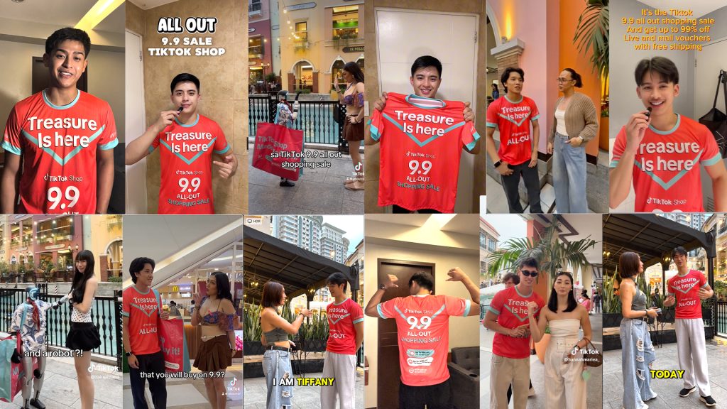 The 9.9 Treasures complete the phrase “9.9 All-Out Shopping” on their shirts, make them not just eye candy but also part of the treasure hunt experience. Participants were challenged to unlock the secret phrase “99AllOutShopping” by spotting the TikTok Shop Cuties wearing shirts with incomplete phrases “9.9”, “All-Out”, and “Shopping”.